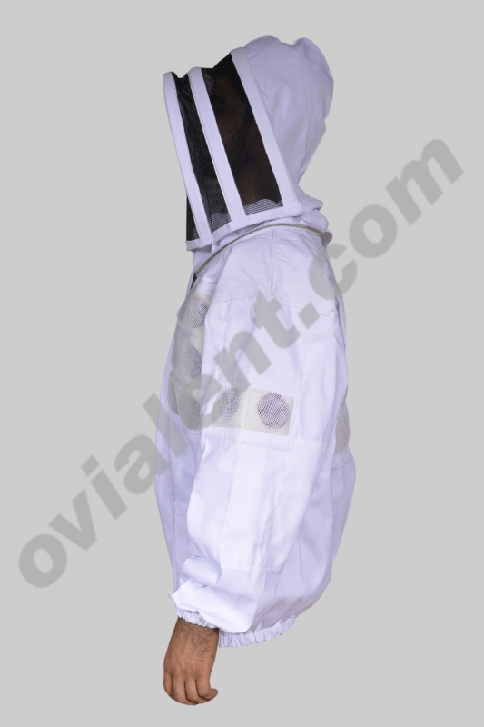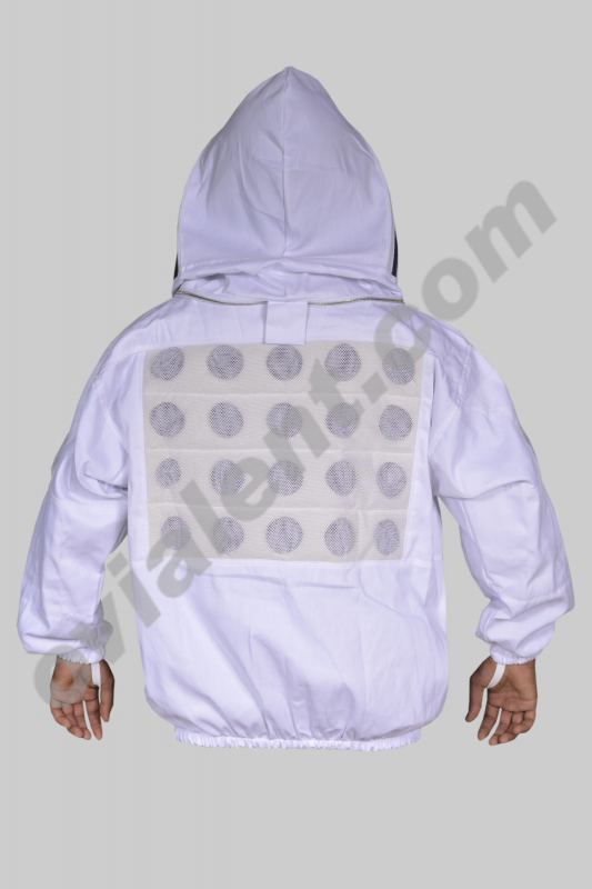 .Ventilaed panels (two at front and one at back and two on arms) designed for comfortable and for great visibility and protection. .Hood style, fencing detachable veil with excellent visibility. .Bigger in size, bees wont be able to sting on your head. .Veil has velcro &zipper which is made up of best quality material to prevent bees. . Zip on the suit and on veil of 18 Inches which attach them.. .High quality zips of plastic and metal, Plenty of pockets, and for unisex .Available in and sizes .Available in White,Yellow,Pink,,Skin,Camouflage Colours .Machine Washable